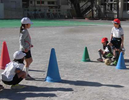 ペースランニングの後は、ボールけり遊びへの取り組みです。友達が受け取りやすいように強さを考えながらボールをけり、そのボールをしっかり足で受け止めます。体育の授業が終わると、うがい・手洗いを欠かさず行います。池之上小学校では、今、インフルエンザによる欠席がどの学年にも見られます。これからもその予防にしっかり取り組んでいきたいと思います。