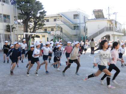 2月6日から体力向上の取り組みとして「ペースランニング」がはじまります。今日の体育朝会では、まず服装を整え、みんなで一斉に5分間を走りました。どの子も5分間を真剣に走っていました。体育朝会がはじまる前の6年生のあいさつの中に「『やりぬく心』を大切にがんばりましょう。」という言葉がありました。自分のペースを知り、ペースを崩さず走りぬく強い心、自分のペースを少しずつ上げていこうとする挑戦する心を大切にしながら、体力向上に結び付く2週間にしていきます。
