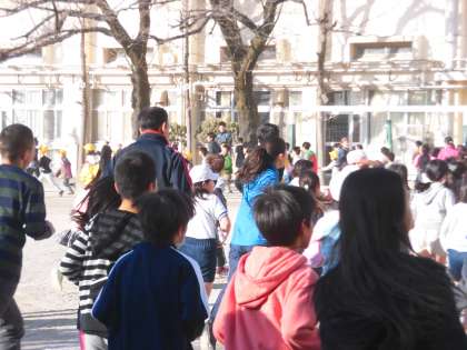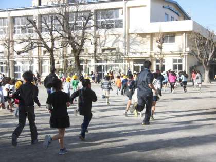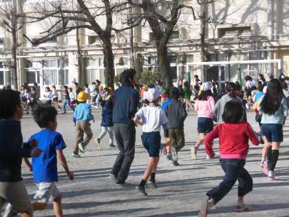 先生たちも子供たちと一緒に一生懸命に走ります。
