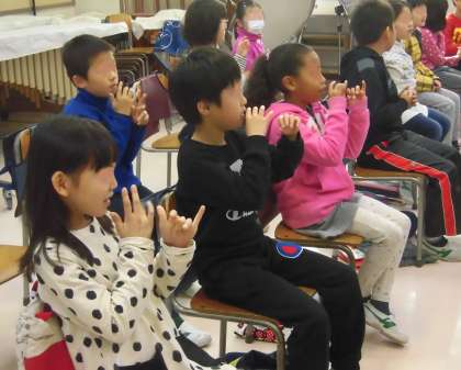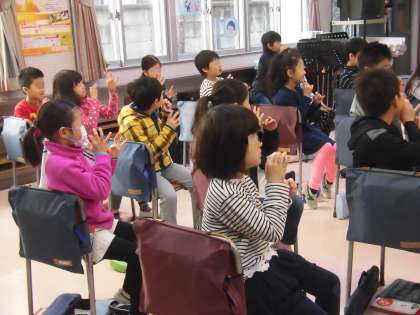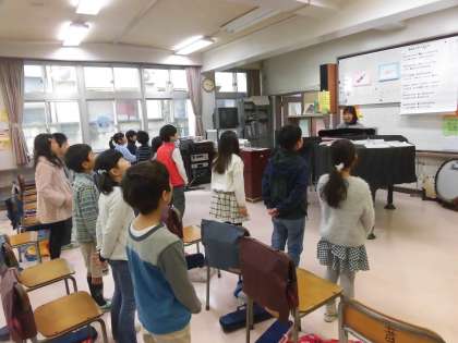 2年生の音楽の様子です。今日は、「くるみわり人形」の行進曲を聴いて、いろいろな楽器の音を楽しみました。曲の中に登場するトランペットとバイオリンの響きに注目して、自分が演奏していることをイメージしながら聴きました。こうした活動を通して、反復されている旋律を感じ取ることもできました。「あなたにありがとう」の歌も美しい響きを意識して歌うことができました。みんな体いっぱい使って音楽を楽しんでいました。