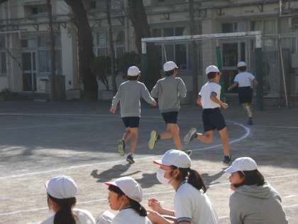5年生の様子です。5年生もまた友達を応援するふわふわ言葉がたくさんありました。「がんばれ!」「いいペースだよ!」「最後の1分間、力を振り絞ってがんばれ!」「周りは気にしなくていいよ。自分のペースでがんばっているよ」・・・短い言葉に込められた心の思いがすてきです。走っている子供たちの表情・・・苦しい瞬間を乗り越えようとして歯を食いしばる子、あきらめずに走り続けようとする子。その真剣さにゴールの瞬間は大きな拍手が起こりました。