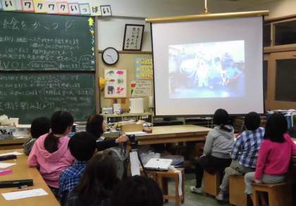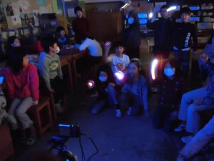 3年生の図工の様子です。今日は「光で絵をかこう」という活動を行いました。子供たちが手にした光をカメラで映し出して作品づくりを楽しみました。グループで話し合って絵のイメージを相談しています。映し出されるまでどんな作品になるのかわかりません。わくわくドキドキする図工の時間になりました。