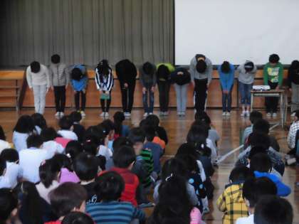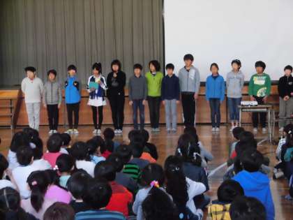 集会委員会の子供たちが終わりのあいさつを行いました。「6年生として生活する残りの日々もがんばります」と立派な発表がありました。集会委員会のみんながアイディアを出し合って、テーマを決め、自分たちの力で運営してくれる姿をうれしく思いました。
