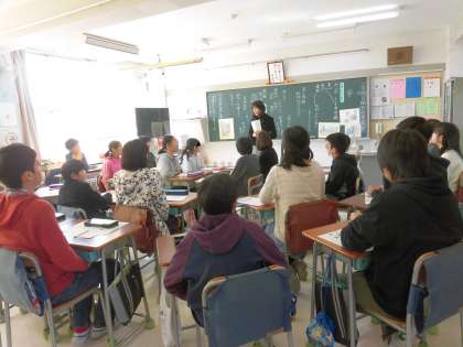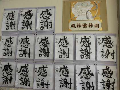 6年生の道徳の授業を参観しました。「目標に向かって努力するぼく」「夢があったからこそ今のぼくがいる」と考える登場人物の思いと自分自身のこれまでの経験を比べながら、みんなで考えたすてきな授業でした。成功することが価値あることではなく、その過程こそ大切であり、その過程が人を育てる・・・自分の言葉でたくさんの意見を交わしながら、道徳的価値に迫っていく6年生。6年間の成長を道徳の時間からも感じることができました。教室には「感謝」の書写が貼られていました。花ボランティアの皆様のご協力で生けた桜の花が、6年生の教室の中で見事に開花していました。