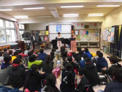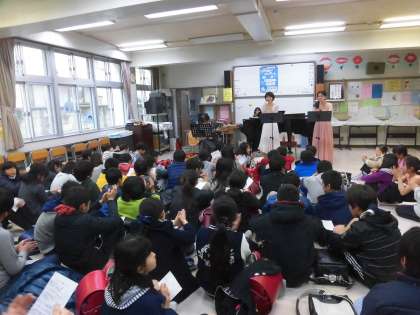 保護者の皆様が、卒業する6年生のために「春こいコンサート」を開いてくださいました。子供たちの希望あふれる巣立ちを、春の歌がお祝いしてくれました。「花」「春のメドレー」「花は咲く」の楽曲を美しい歌声で披露してくださいました。最後の曲は「365日の紙ひこうき」です。この歌はみんなで合唱しました。夢ある歌詞に心がじんとしました。