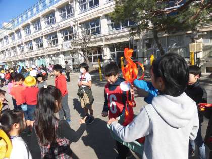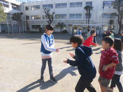 3月16日、最後の集会が行われました、なかよし班で取り組める楽しいじゃんけんゲームを考えました。もうすぐ卒業する6年生が、じゃんけんの相手として協力してくれました。1年生から6年生までが楽しめるすてきなゲームです。