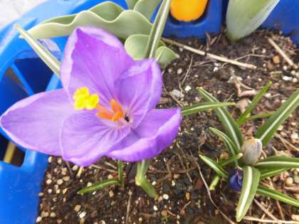 職員室前には、1年生が育てているクロッカスが咲きました。1年生の子供たちは、「黄色が先に咲いたんだよ。」「紫の花が咲き始めたよ。」など、観察して発見したことをたくさん話してくれました。委員会活動で育てているパンジーも見事です。子供たちが愛情をもって育てた花々が春の訪れと子供たちの自然を思う心を喜んでいるようです