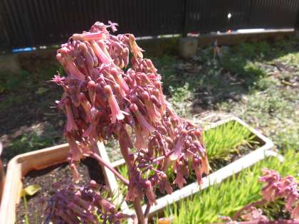 3月22日は、今年度、最後の「ビオトープの日」でした。たくさんの花が咲いています。花を見つめる子供たちのやさしさを感じました。3枚目の写真は、1・2学期に子供たちが楽しそうに観察していた「コダカラベンケイソウ」の花。葉から小さな葉っぱの芽がたくさん生まれるコダカラベンケイソウ・・・花もたくさん咲くことがわかりました。