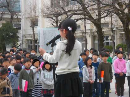 平成28年度の修了式を行いました。今日をもって1年間の学びが修了します。修了式では「修了証」を代表児童に授与しました。代表児童の言葉からもたくさんの努力と成長を感じました。最後の行進も立派です。みんなほんとうによくがんばりました。大きく成長しました。たくさんのことを経験し、その一つ一つの経験を糧にして、4月からは中学校進学、一つ上の学年への進級が待っています。