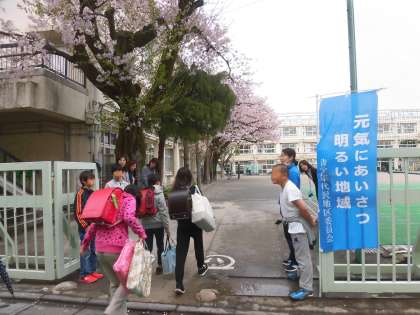 4月7日から13日までの5日間、富士の学び舎4校で「あいさつ週間」の取り組みが行われています。富士の学び舎の小中学校で共通の日を設け、地域の皆様や保護者の皆様にご協力いただきながら、あいさつの輪を広げていく取り組みです。青少年代沢地区委員会の皆様を中心にたくさんの応援をいただいています。あいさつの輪が広がっていくことでしょう。元気なあいさつであふれる地域を目指していきます。