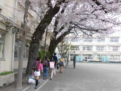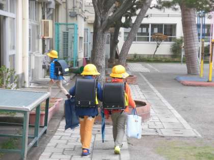 1年生も元気に登校してきました。1日のはじまり・・・大きな声で「おはようございます」のあいさつが響きます。「犬走り」を通って教室に向かう生活の決まりもみんなしっかり守っています。
