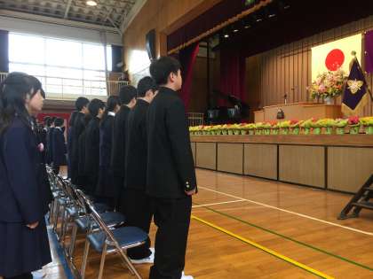 4月7日、富士中学校入学式が行われました。93名の新入生が入学式に参加していました。真新しい制服が新鮮でした。中学生になった池之上小学校の卒業生も立派な中学生として胸を張って入学式に参加していました。今年度は、誓いの言葉という大役を池之上小学校の卒業生が務めました。中学校進学へのわくわくするような気持ちと小学校で学んできた「団結力」「仲間と一緒に高い壁を乗り越えた絆」について、堂々と話していました。友の活躍を見つめる卒業生たちの瞳が美しく感じました。池之上小学校での学びが確かに子供たちの中に存在していることをうれしく思いました。中学生の皆さん、進学おめでとう。