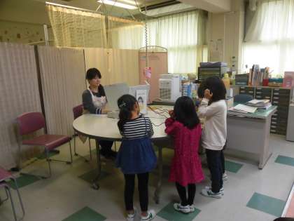 定期健康診断がはじまっています。今日は1年生の聴力検査が行われました。先生のお話をよく聞いて、しっかり検査に取り組むことができました。検査が終わると廊下で静かにみんなを待っています。とても立派でした。