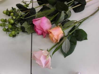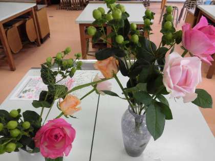 子供たちが生けた花・・・とてもすてきです。この花を教室に飾ります。花のある教室風景は心が和みます。