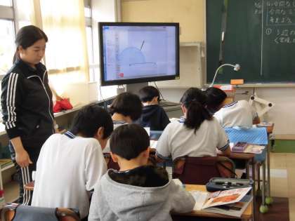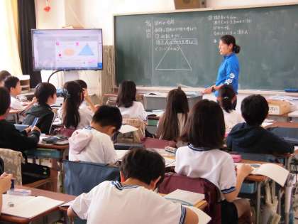 5年生の算数の様子です。今日は「合同な三角形のかき方を考えよう」を1時間のねらいとしてどのコースも授業が進められていました。分度器や定規を使って三角形を一生懸命に作図していました。子供たちの理解を支援するためにICTも積極的に活用しています。3コースともとても熱心に授業に向かう姿がありました。