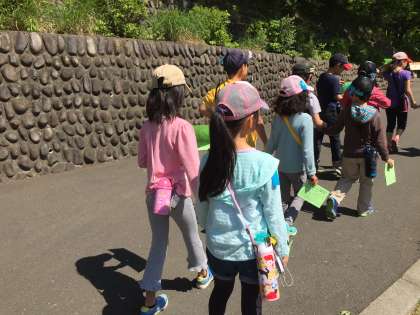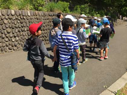 いよいよグループ行動がはじまります。4年生と3年生がペアになり、仲よくスタートしました。