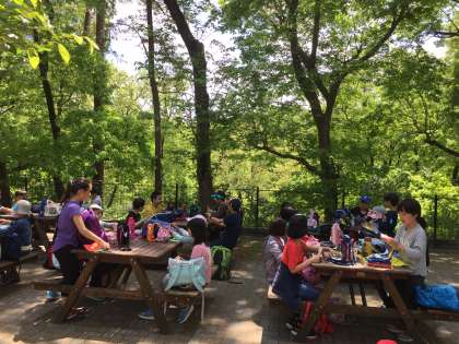 すべての班が時間通りに戻ってきました。グループごとにお昼の時間になりました。