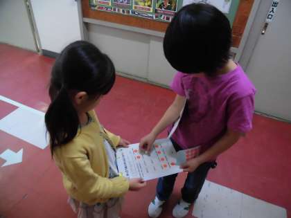 クイズに答えた1年生にシールを貼ってあげる2年生に頼もしさを感じました。2年生は、学校たんけんの終了時刻を気にしながら行動できました。学校たんけんが終わると、教室に戻り、折り紙を教えてあげていました。2年生のリーダーシップが存分に発揮された学校たんけんになりました。優しい気持ち、お兄さんお姉さんとしての責任感、1年生に学校のことを伝えるコミュニケーション・・・2年生の成長をうれしく思いました。