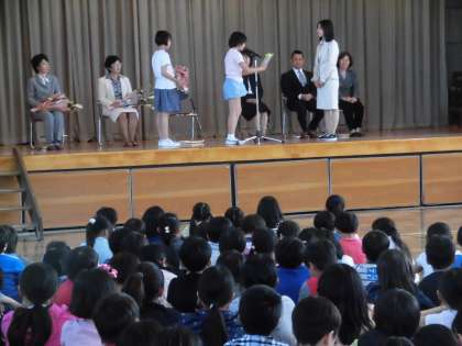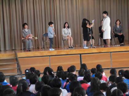 5月2日、お世話になった先生や主事の皆様をお迎えして離任式が行われました。