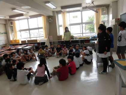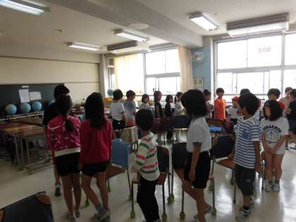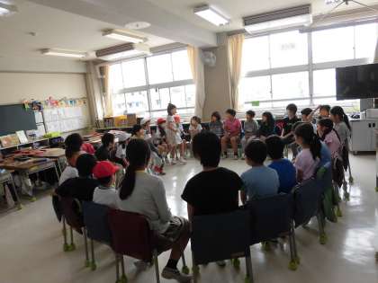5月9日、5月のなかよし班活動が行われました。中休みを使って、みんなで仲良く遊びました。今日は教室でできる遊びを考えました。どの班も6年生がリーダーシップを発揮していました。「ドンじゃんけん」「いす取りゲーム」「なんでもバスケット」リーダーさがし」「ゴロゴロドッカーン」「じゃんけん列車」など・・・1年生から6年生が集まって、みんなで仲良く遊ぶことのできる池之上の子供たちです。
