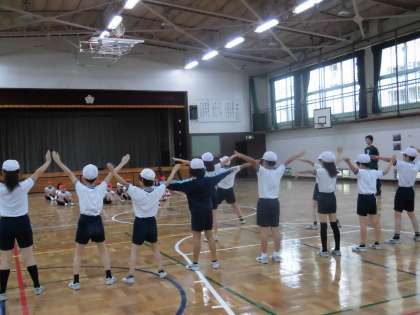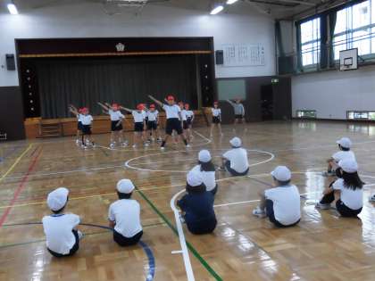 8時前の学校です。運動会まで2週間となった5月15日(月)、朝から運動会に向けてのたくさんのがんばりが見られました。応援団が体育館で声出しの練習をしていました。教員も校庭のライン引きを行っていました。