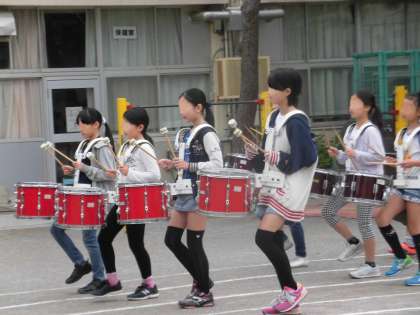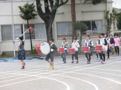 大型連休前から練習していた鼓笛隊は、今日から校庭で行進に合わせた練習をはじめました。運動会はたくさんの人たちの努力やがんばりが必要です。一人一人が自分の役割をしっかり果たし、お互いに頑張りを認め合っていきたいと思っています。