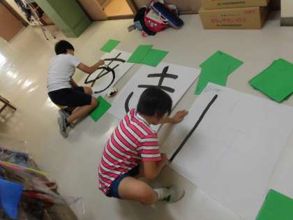 5月15日、6時間目に運動会係児童打ち合わせ会が行われました。運動会にはたくさんの係があります。準備係・審判係・放送係・採点係・装飾係・看護係・応援団・鼓笛隊です。今日は、仕事の内容の確認や役割分担を行いました。さっそく作業に取り掛かる係もありました。写真は装飾係の活動の様子です。プログラム・スローガン作りに一生懸命に取り組む子供たちです。