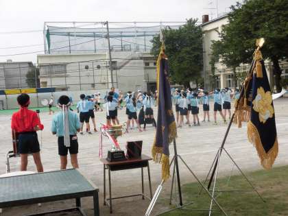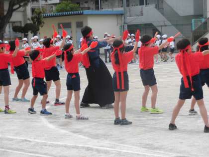 第1回目の運動会全体練習が行われました。応援団が衣装を整え登場しました。子供たちの意欲も高まっています。