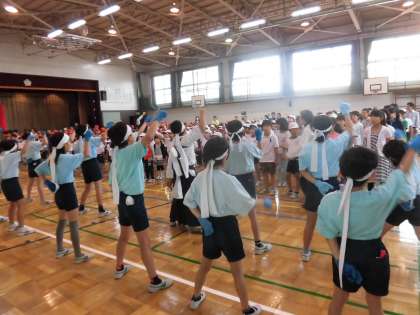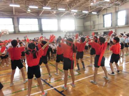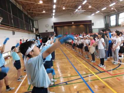 5月18日、音楽朝会の時間を活用して、運動会の歌の練習が行われました。応援団が音頭をとりました。開会式に歌う予定です。毎年、大きな盛り上がりを見せる歌「ゴーゴーゴー」。運動会当時の子供たちの元気な歌声を楽しみにしていただければと思います。