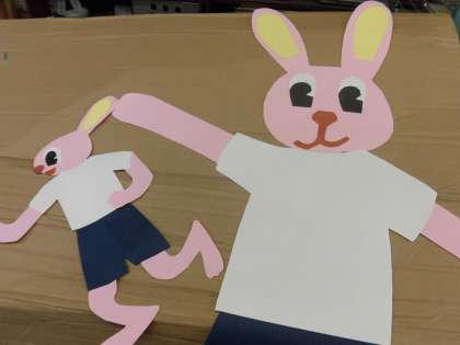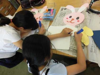 装飾係の様子です。第1回目はプログラムの作成をしていた装飾係の子供たち、今日はかわいらしい動物たちを作っていました。みんな一生懸命に作品作りに向かっています。この作品が教室の窓に飾られ、運動会を盛り上げてくれることを楽しみにしています。