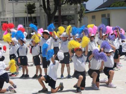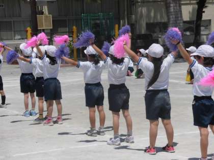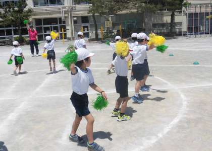 小学校に入学して2か月が経とうとしている1年生。小学校での初めての運動会を力いっぱいがんばっています。今日は、色鮮やかなボンボンをもって踊りの確認をしていました。先生から「とっても上手ですよ。もっともっと笑顔で踊れるとすばらしいです。」そんな声かけがありました。先生の言葉にしっかり答えて、笑顔いっぱいのダンスを見せてくれました。体全身を使って踊ることの楽しさを表現している子もたくさんいました。