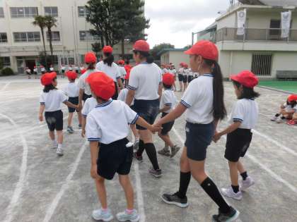 運動会全体練習で、池之上音頭に取り組みました。1年生が戸惑うことのないように6年生が見守ります。隊形や踊り方も6年生がやさしく教えてあげます。運動会は、子供たちの体力の面だけでなく、あたたかな心、美しい心の成長を垣間見ることのできる大切な教育活動の一つです。