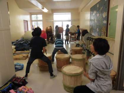 いよいよ明日は運動会。朝から雨が降り続いています。1日かけてリハーサルを予定していましたが、校庭での最後の練習はできなくなりました。すでにたくさんの練習をしてきた子供たちです。担任や担当教員から「大丈夫。これまでの練習の成果を思い切り出しましょう。笑顔で自分の演技を精一杯しましょう。」と激励の言葉がありました。大きな声で「はい!」と答える子供たちから、練習をやり遂げた、力強い自信が伝わってきます。体育館下のロビーでは6年生が和太鼓の自主練を行っていました。最後まで必死に取り組む姿にまぶしさを感じました。