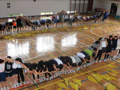 前担任の先生が子供たちのリハーサルを応援に来校してくださいました。先生の学校の運動会と重なってしまったそうです。5・6年生のリハーサルを見守ってくださいました。5・6年生の一生懸命さと大きく成長した姿に感動され、涙を流しながら喜んでくださいました。子供たちにとっては大きな励みになりました。