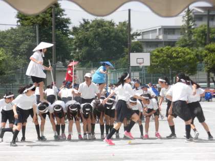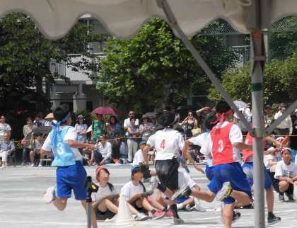 6月3日、富士の学び舎 富士中学校の体育大会が行われました。池之上小学校の卒業生たちが大活躍する姿を見ることができ、とてもうれしい気持ちになりました。クラス対抗の体育大会でしたが、富士中生たちのさわやかな応援が心に響きました。「がんばれ、がんばれ」とあたたかな声が飛び交っていました。写真は「富士川流」という1年生の競技と2年生の「全員リレー」の様子です。みんな力いっぱいがんばっていました。