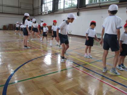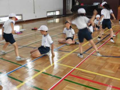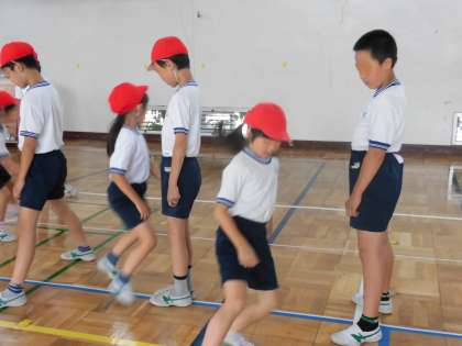 6月6日、全校でスポーツテストを実施しました。今日行った種目は、握力・上体起こし、長座体前屈・反復横跳び・立ち幅跳びです。1年生と6年生、2年生と5年生、3年生と4年生がペアを組み、実施しました。特に、5年生と6年生は、1年生・2年生のスポーツテストをあたたかな気持ち見守りました。やり方を教えてあげたり、記録を書いたり、一緒に移動したりと、大活躍です。写真は、反復横跳びの様子です。5・6年生が、1・2年生に跳び方を教えてあげています。やさしさと責任感が伝わってきます。
