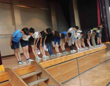 集会委員会の子供たちは、舞台の上で一緒に踊ったり、ゲームの指示を出したりしていました。自分たちで考えた企画、共に楽しむ明るさ、集会が終わった時の礼儀正しいあいさつ。すてきな姿をたくさん見せてくれました。