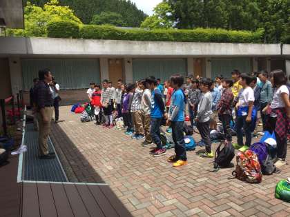 昼食後は開室式を行いました。校章旗を掲揚し、お世話になる宿舎の方からお話をしていただきました。3日間、この宿舎で仲間と助け合いながら楽しい時間をつくっていきたいと思います。
