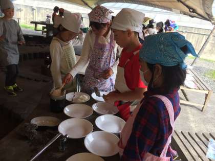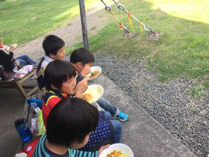 カレーができあがりました。あちらこちらから「おいしい」と声が上がっています。自分たちの力で全てやり遂げた満足感が何よりもの調味料になっているのかもしれません。