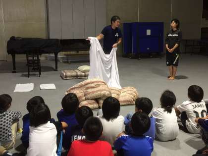 夕食後、みんなで集まり、明日の朝の荷物整理や布団の片付け方の説明が補助員のお二人からありました。これまでお世話になった様々なことへの感謝の気持ちを「片付け」に込めます。シーツや布団のたたみ方にも細かいルールがあります。次に使う人への思いやりにも関係してきます。明日の朝、みんなで協力してがんばります。