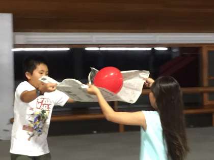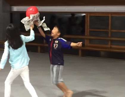 最後のゲームはクラス対抗風船運びゲームです。一生懸命に走って、精一杯応援して楽しい室内レクになりました。