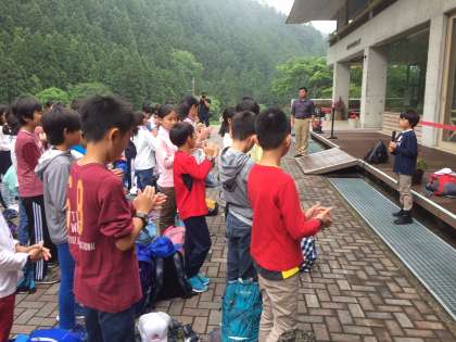 ふじやまビレジとお別れの時間になりました。閉室式を行い、この3日間の感謝の気持ちを伝えました。この後は、川場村巡りに出かけます。天気は曇り空、雨は降っていません。
