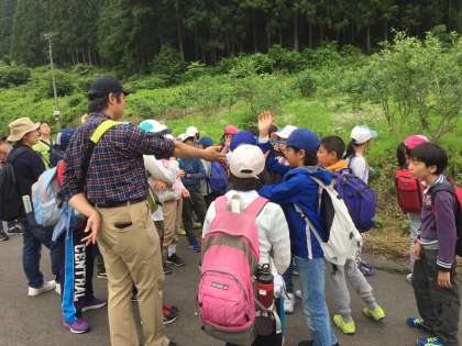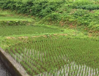 棚田やブルーベリー畑を見学しました。まだ青いブルーベリーですが、たくさん実っています。