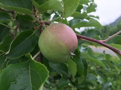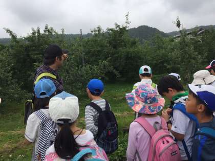 川場村にはりんご園がたくさんあります。まだ、青い小さなりんご。りんごは育てる過程がとても難しいことも教えていただきました。