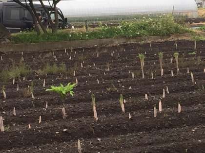村巡りで、こんにゃく芋の畑も見ました。こんにゃくになるまで3年もかかるそうです。写真は1年目の畑です。