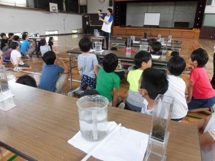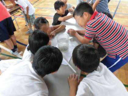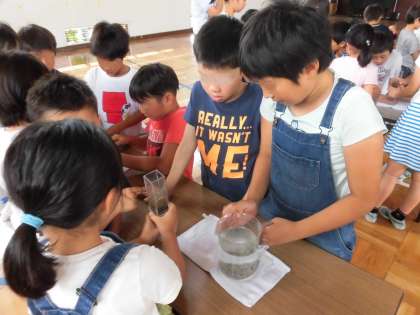 実験を通して、おいしい水道水が届くまでの工程を学びました。友達と協力して実験に取り組む4年生の真剣さが伝わってきました。