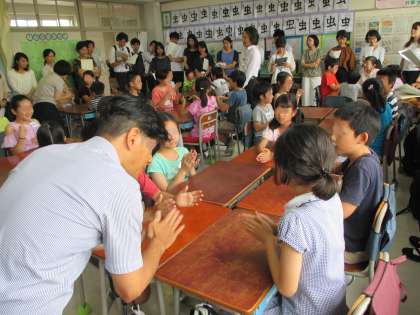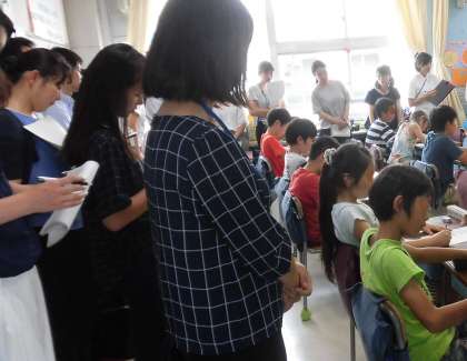 7月4日の5時間目、4年生は英語活動を行っていました。今日は世田谷区の先生方の研修会でもありました。4年生の教室にたくさんの先生が集まり、授業の様子を参観されました。子供たちはいつものように明るく元気に「Numbers(数字)」の学習に取り組みました。今日はネイティブの先生と一緒に英語活動を楽しみました。