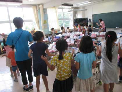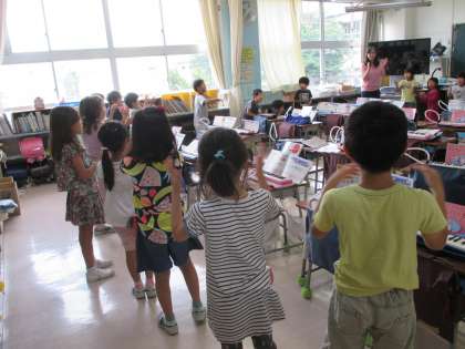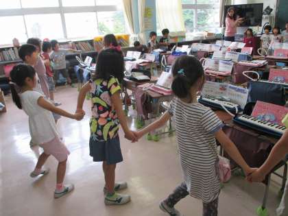 お隣のクラスも音楽を体全身で楽しんでいました。笑顔がいっぱいです。