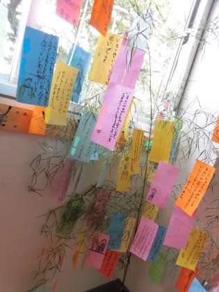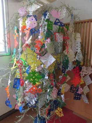 今日は7月7日、七夕です。写真は1年生が作った七夕飾り。願い事をカードに書き、一緒に飾りました。「ともだちがもっとふえますように」「みんながもっともっとなかよくなれますように」「さかあがりができますように」「すいえいがじょうずになりますように」・・・子供たちの願いがかなう学校でありたいと思いました。