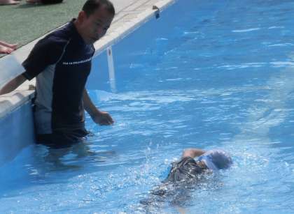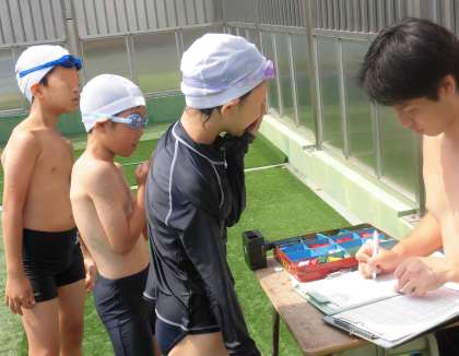 3・4年生が自分の泳ぎに挑戦し、1学期最後の水泳の授業で検定を行いました。水しぶきを上げながら真剣に泳ぐ子供たち。友達を応援する子供たち。進級に喜ぶたくさんの姿がありました。みんなとてもうれしそうです。悔しい思いをした子は、夏休みを経て、次の機会に挑戦する意気込みをもちました。進級した子は、先生からワッペンを付けてもらいました。合格することも目標ですが、自分の力を精いっぱい出し切って努力することが大切です。どの子も一生懸命に泳いでいました。がんばりました。
